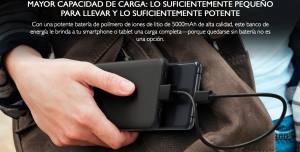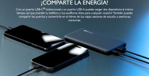 • Este banco de energía se recarga al doble de la velocidad estándar (7,5-8 h a través de USB-C )