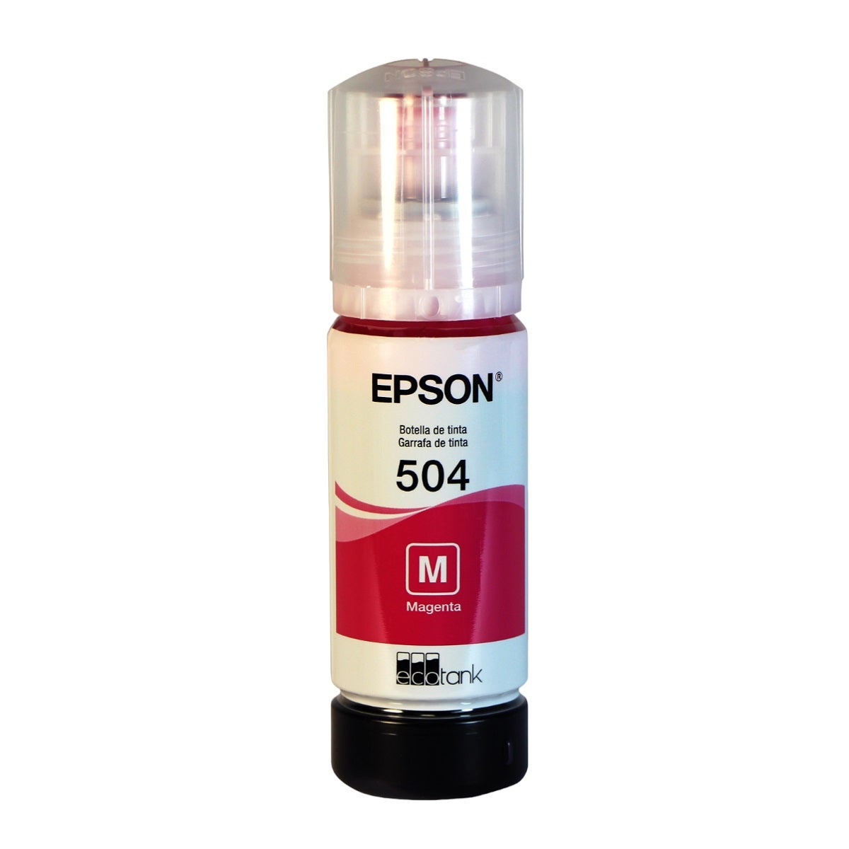 Las botellas de tinta de color magenta modelo T504 son compatibles con impresoras Epson de la línea Ecotank. Con las tintas de calidad original Epson no solo obtienes un alto rendimiento, sino que también conservas los dos años de garantía para tus equipos de impresión Epson. Impresoras compatibles: L4150, L4160, L4260, L6161, L6171, L6270, L6191 y L14150.